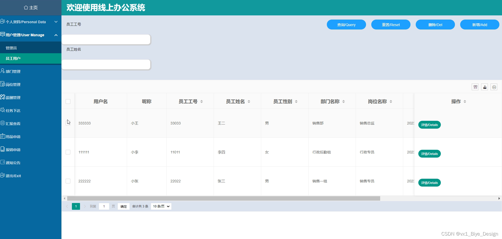 线上办公系统项目的概述设计分析,主要内容进行线上办公系统信息的具体分析,进行数据库的是设计,数据采用mysql数据库,并且对于系统的设计采用比较人性化的操作设计,对于系统出现的错误信息可以及时做出处理及反馈。