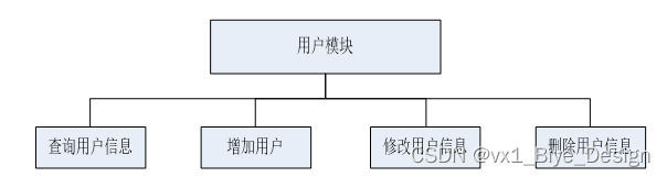 本系统的用户包括管理员、用户,用户模块的功能基本是相同的,用户模块结构图为例进行分析,如下图: