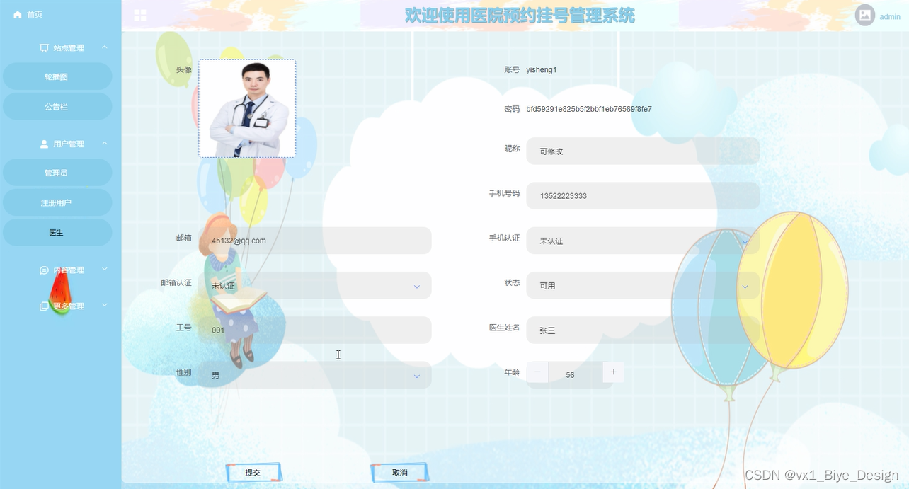 如图5-4医生信息界面图
