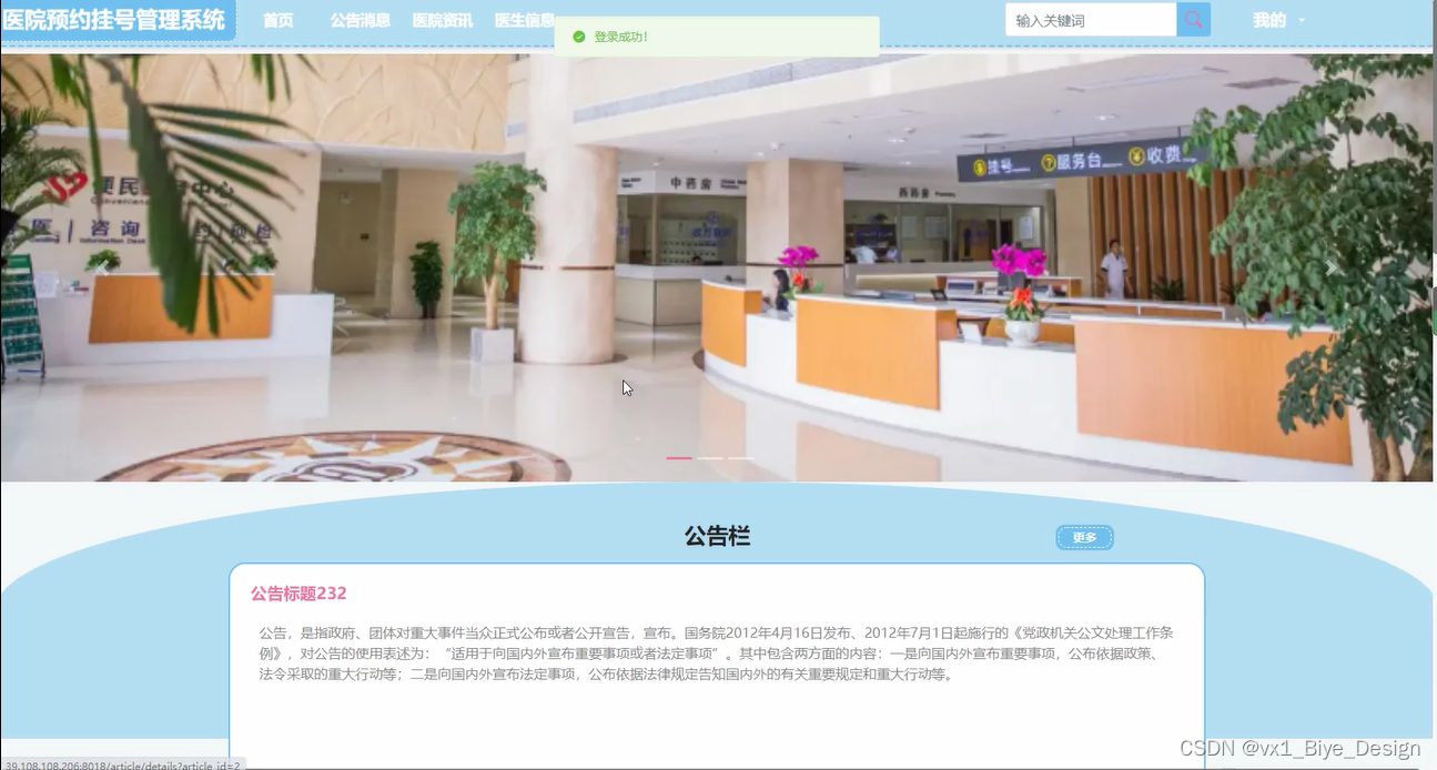 预约挂号:用户根据自己的需求选中某个医生进行预约挂号操作,提交成功后,可以查看到个人已提交的预约记录。
