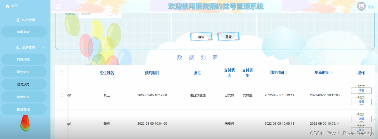 医生信息管理:对医生信息进行查询、重置等操作。