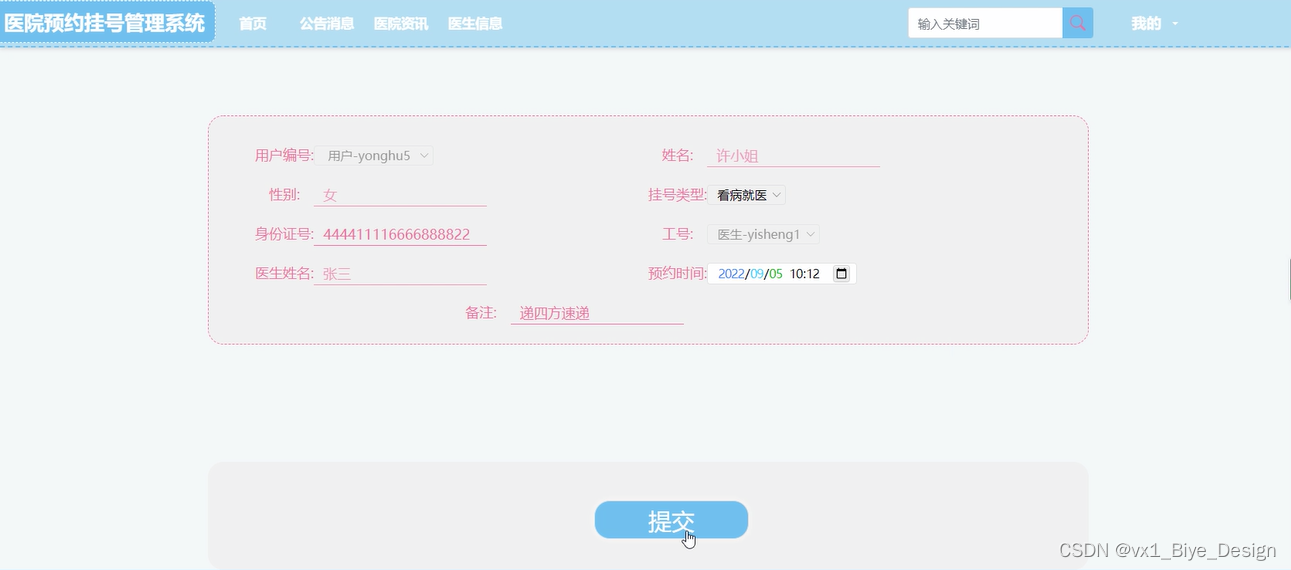 如图5-5提交预约挂号的界面图