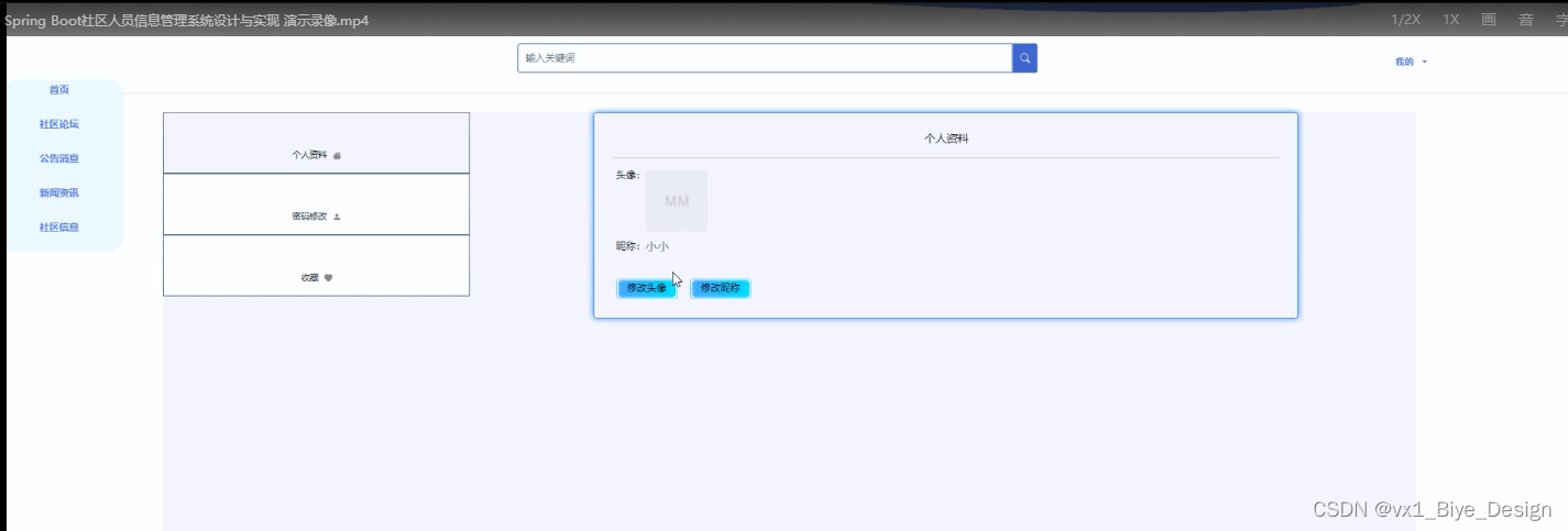 (8)个人中心:当用户点击右上角“我的”这个按钮,就会进入到对应的后台进行信息的管理了;