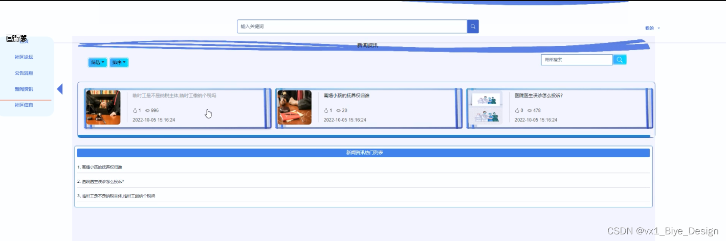 (5)社区资讯:用户进行社区资讯的阅览,查看管理员发布的社区资讯信息。