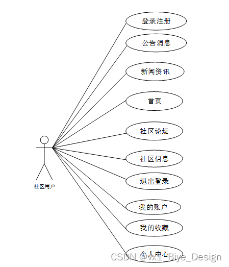 通过2.3功能的分析,得出了本社区人员信息管理系统的用例图: