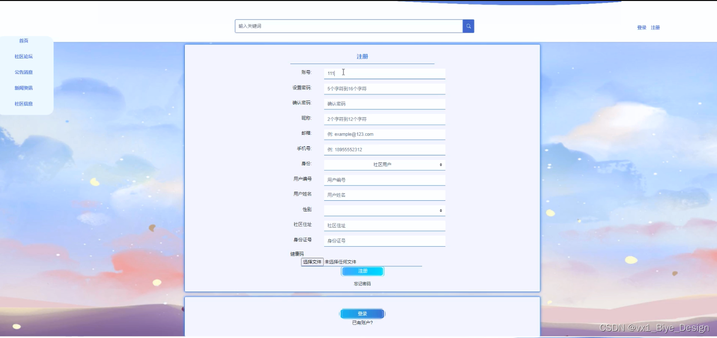 (1)社区用户注册登录:用户注册为用户并登录社区人员信息管理系统;用户对个人信息的增删改查,比如个人资料,密码修改。