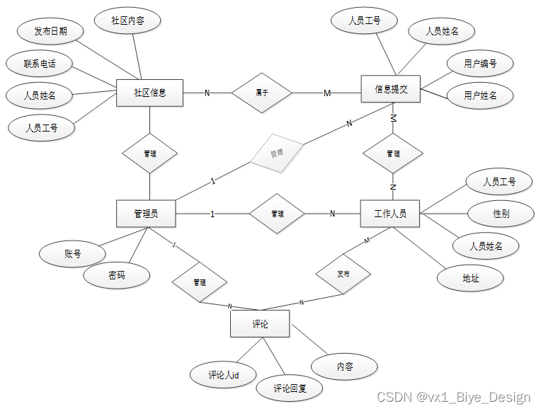 下面根据社区人员信息管理系统的数据库总E-R关系图可以得出社区人员信息管理系统需要很多E-R图,在此罗列出来一些主要的数据库E-R模型图。