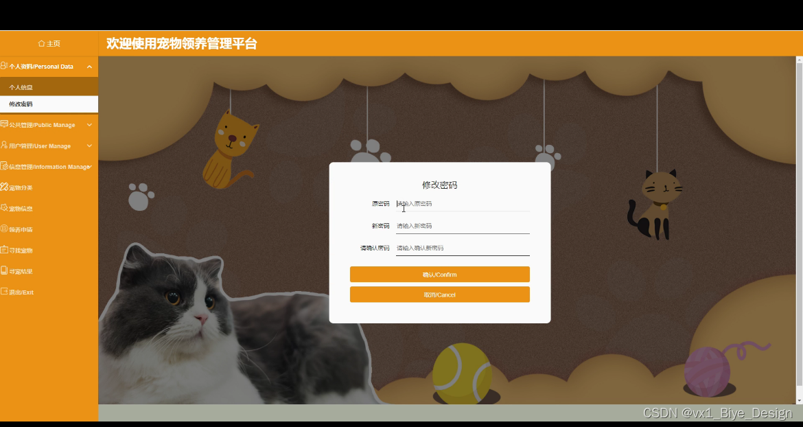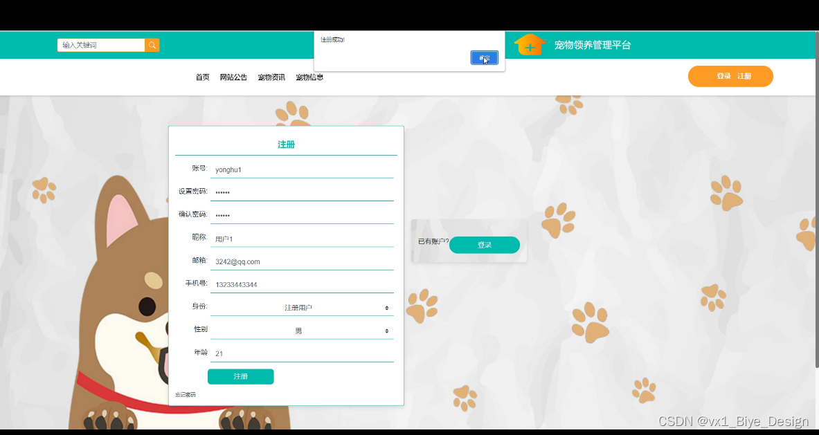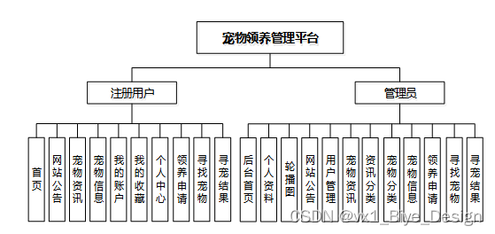 (1)功能要求:首页,个人资料,公共管理(轮播图,网站公告),用户管理(管理员,注册用户),信息管理(宠物资讯,资讯分类),宠物分类,宠物信息,领养申请,寻找宠物,寻宠结果等功能模块。