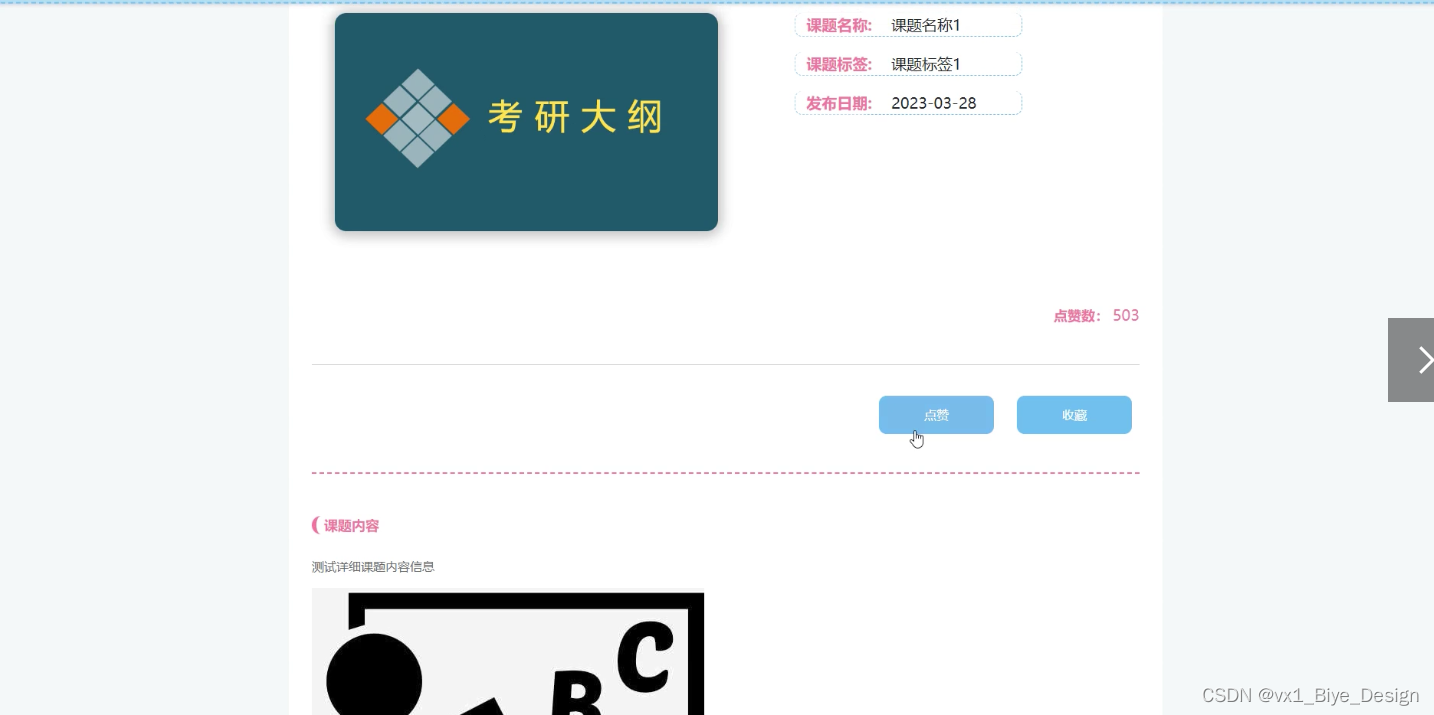 在研课题,在研课题页面可以查看课题名称、课题便签、发布日期,可以根据需要对在研课题进行点赞、收藏操作。