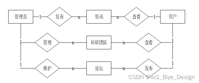 对于一个要开发的系统来说,E-R图可以让别人能更快更轻松的了解此系统的事务及它们之间的关系。根据系统分析阶段所得出的结论确定了在考研资料共享系统中存在着多个实体分别是用户、资源共享、教研资讯。