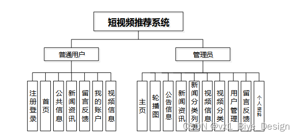 系统所要实现的功能分析,对于现在网络方便的管理,系统要实现用户可以直接在平台上进行查看所有数据信息,根据需求可以进行在线添加,删除或修改信息,这样既能节省时间,不用再像传统的方式耽误时间,真的很难去满足用户的各种需求。所以短视频推荐系统的开发不仅仅是能满足用户的需求,还能提高管理员的工作效率,减少原有不必要的工作量。