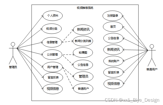 (1)功能要求:主页、个人资料、公共管理((轮播图、公告信息)用户管理(管理员、普通用户)信息管理(新闻资讯、新闻分类列表)视频分类、视频信息、留言反馈等功能模块。