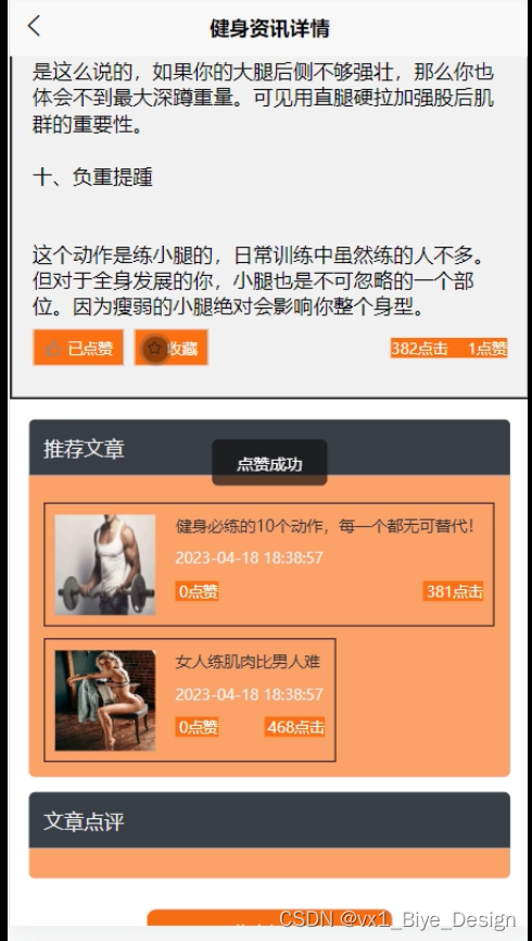 在健身资讯页面,用户可以轻松获取有关资讯的详细信息,还可以通过关键字快速搜索,同时还可以进行点赞、评论、收藏等功能,如图5-4所示。