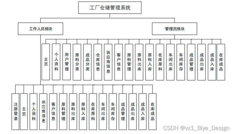 本工厂仓储管理系统主要包括两大功能模块,即管理员功能模块和用户模块。