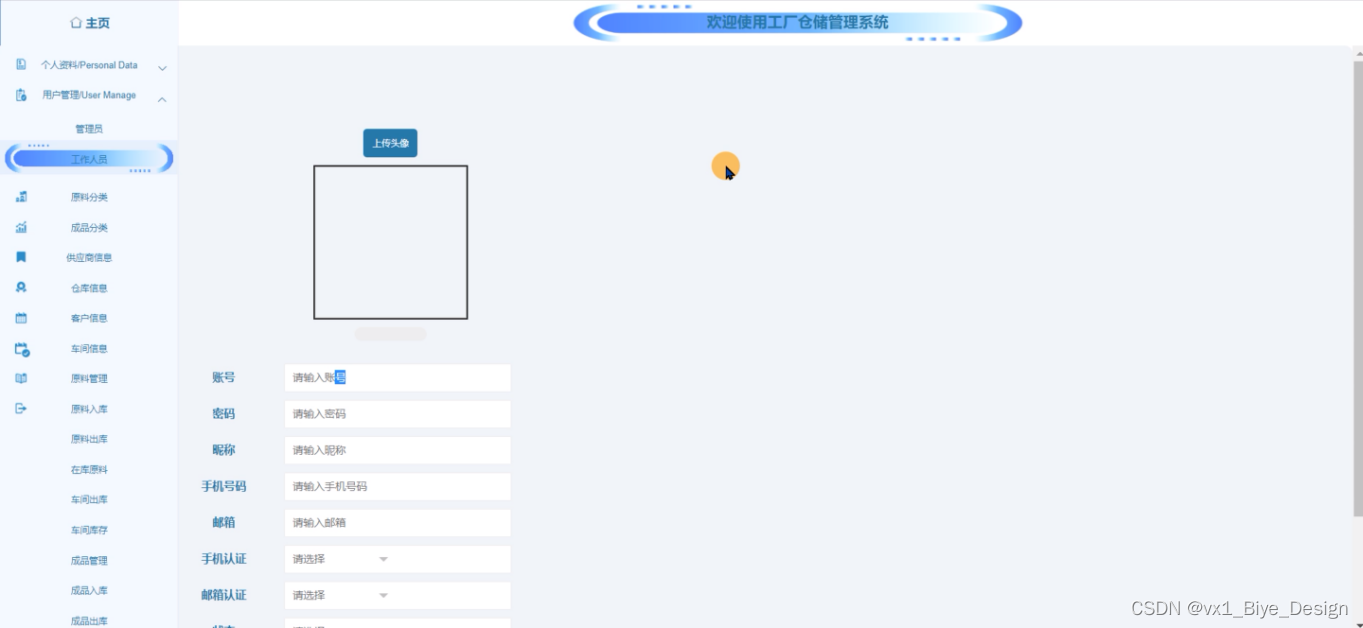 The main users of the Spring Boot factory warehouse management system are administrators and staff. The functions include: homepage, personal information, user management, raw material classification, finished product classification, supplier information, warehouse information, customer information, workshop information, raw material management, raw material outbound, raw material inbound, in stock raw materials, workshop outbound, workshop inventory, finished product management, finished product outbound, finished product inbound, and in stock finished products; Staff: Home page, personal information, supplier information, customer information, raw material management, raw material outbound, raw material inbound, in stock raw materials, workshop outbound, workshop inventory, finished product management, finished product outbound, finished product inbound, in stock finished products, and other functions. Due to the comprehensive design of the functional modules on this website, the entire process of the factory warehouse management system can be implemented.