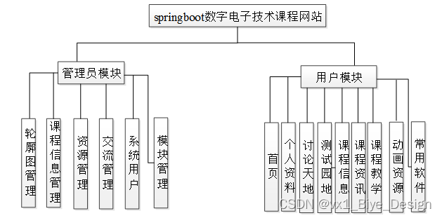 数字电子技术课程网站总体分为前台用户模块和后台管理员模块。