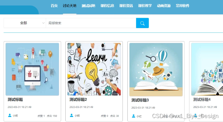 讨论天地模块:讨论天地模块用户可以发布讨论内容和查看所有用户发布的讨论内容并进行评论。