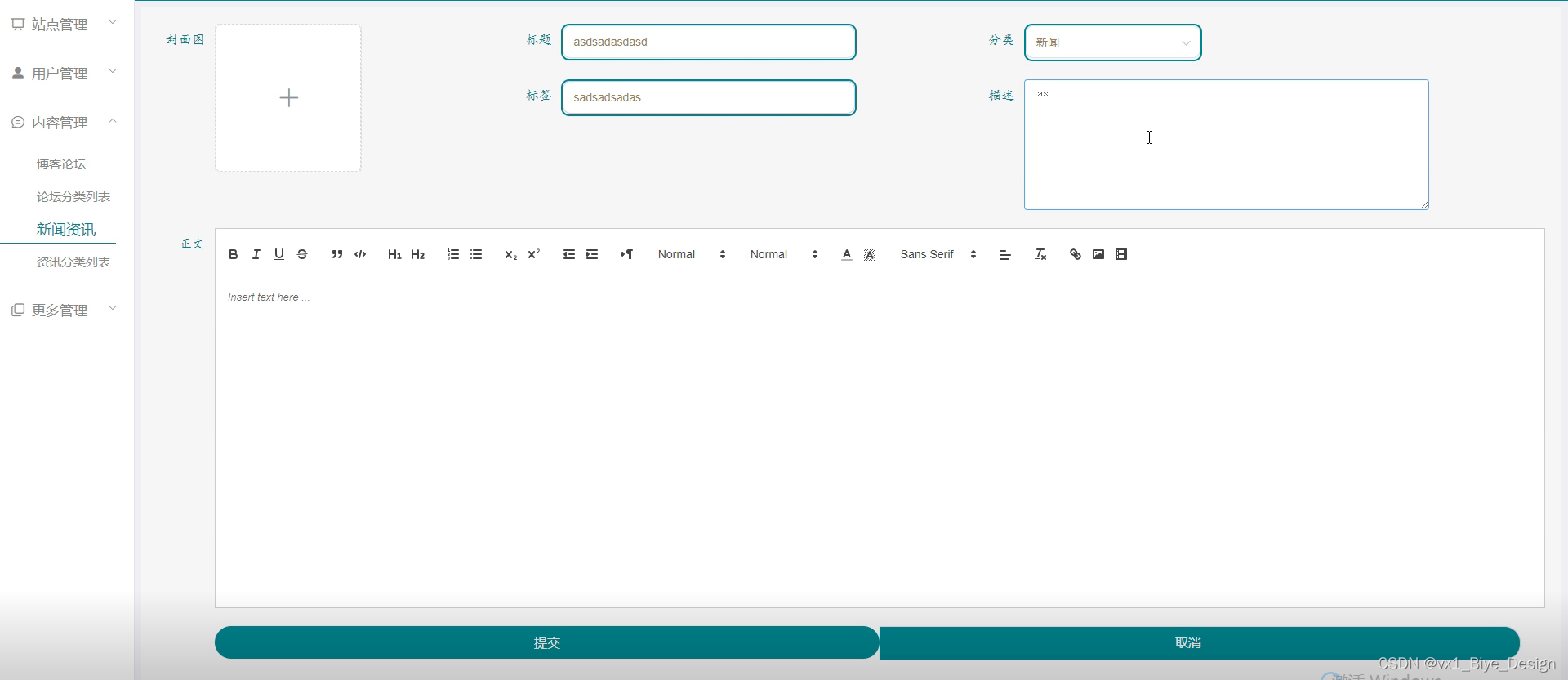 资源管理:管理员可以查询,添加,删除课程资讯内容,资讯分类,管理测试园地题库,评分等功能。