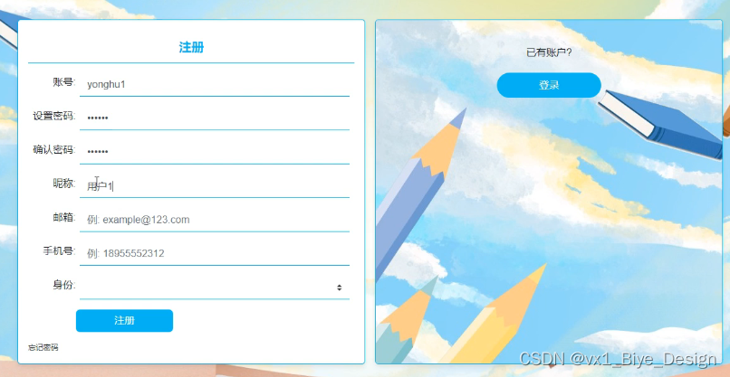 下表是注册功能测试用例,检测了各种数据的输入情况,观察系统的响应情况。得出该功能达到了设计目标。