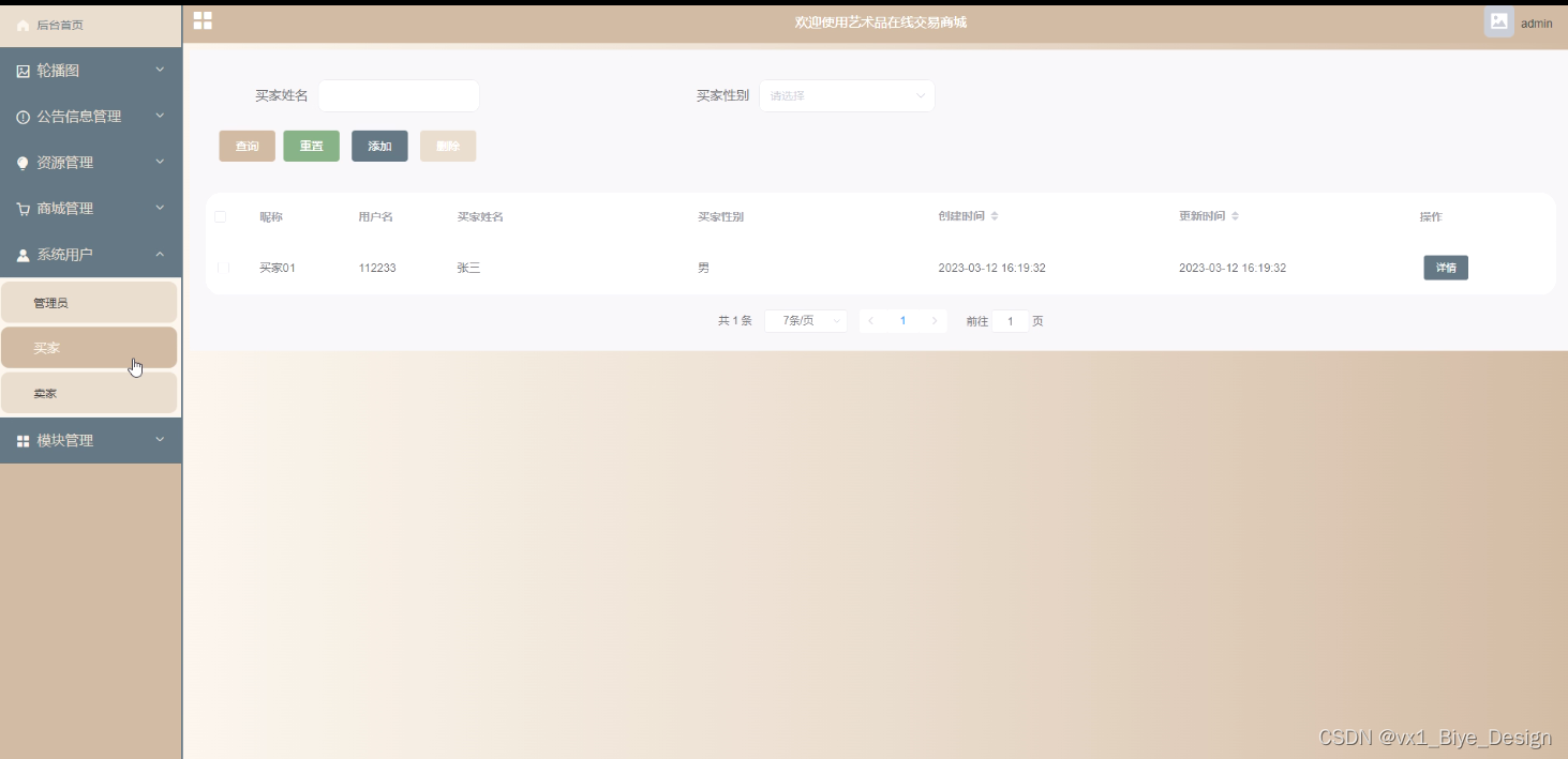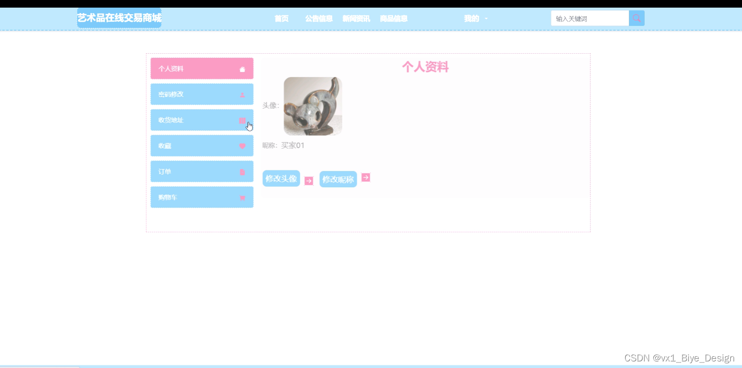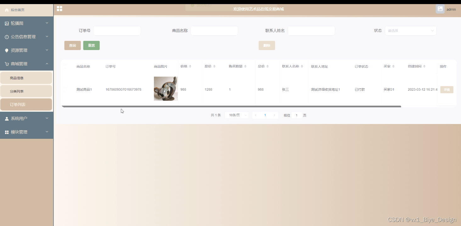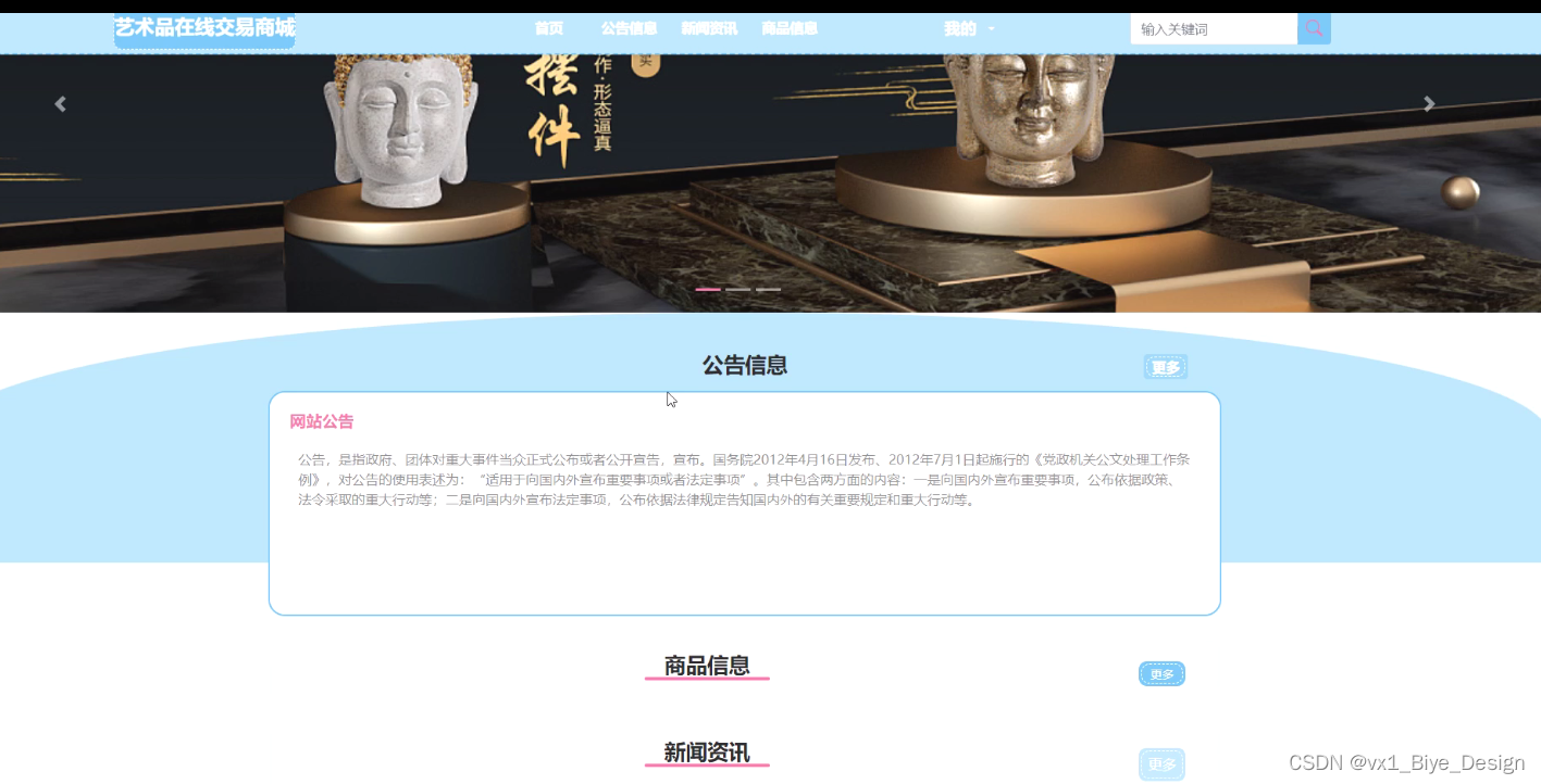 目前许多人仍将传统的纸质工具作为信息管理的主要工具,而网络技术的应用只是起到辅助作用。在对网络工具的认知程度上,较为传统的office软件等仍是人们使用的主要工具,而相对全面且专业的艺术品在线交易商城的信息管理软件仍没有得到大多数人的了解或认可。本选题则旨在通过标签分类管理等方式,实现系统首页、轮播图、公告信息、资源管理(新闻资讯、资讯分类)商城管理(商品信息、分类列表、订单列表)系统用户(管理员、买家、卖家)模块管理(物流信息)等信息管理功能,从而达到对艺术品在线交易商城信息的高效管理。