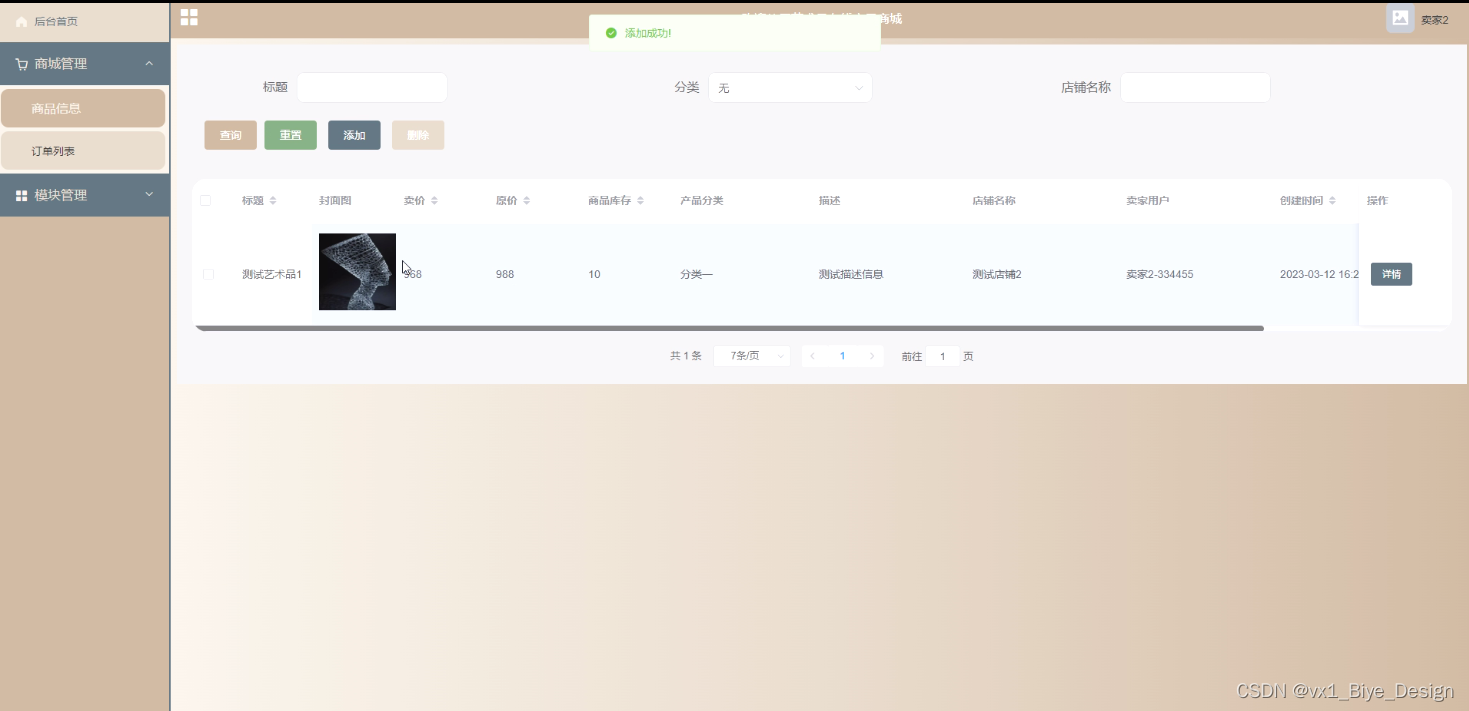 3、功能的完善性:可以管理首页、轮播图、公告信息、资源管理(新闻资讯、资讯分类)商城管理(商品信息、分类列表、订单列表)系统用户(管理员、买家、卖家)模块管理(物流信息)模块的修改维护操作。