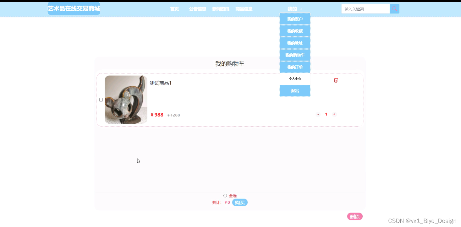 通过对功能的测试,艺术品在线交易商城的基本功能都是可行的,不管是系统里面的功能,还是界面的设计都是可值得推广宣传的。