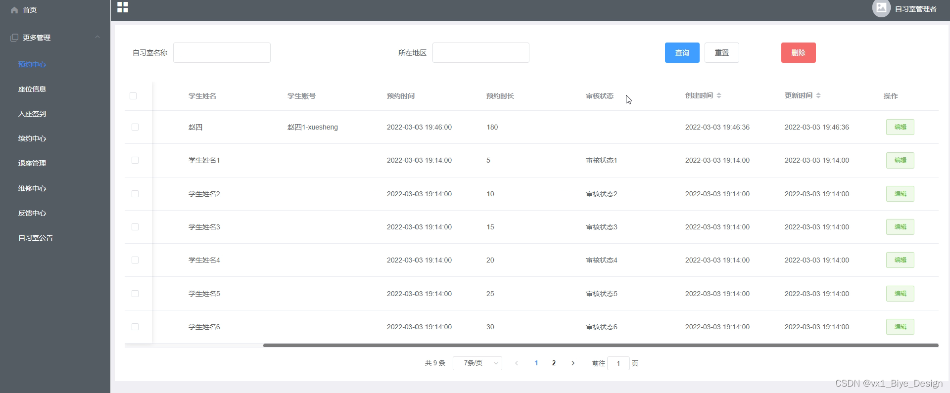 座位签退管理模块:学生可以在线进行座位签退,管理员对学生的申请进行审核。