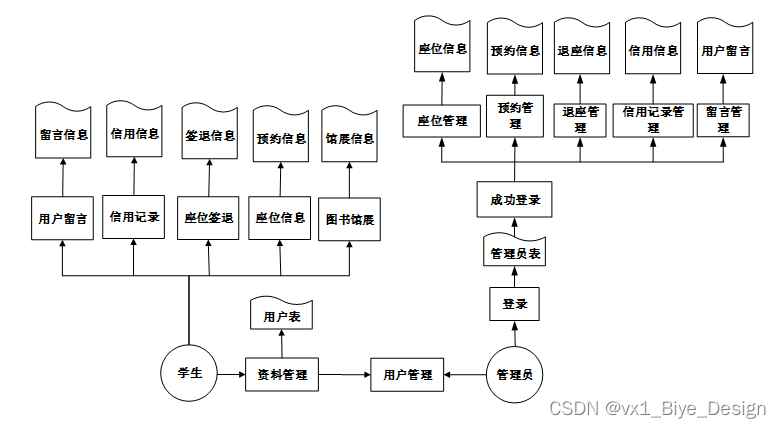 第三章系统分析:主要是对校园图书馆自习室座位管理系统进行需求分析,以及对其数据流程与功能进行分析。