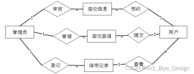 用户点击某个自习室进入预约详细页,点击报名预约按钮进入自习室座位信息页,提交座位预约信息,管理员管理用户的自习室座位预约信息,审核预约信息。