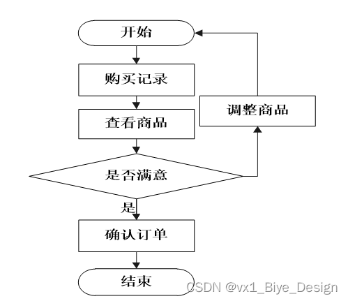 根据系统的功能需求,再分析该系统的业务流程,用户登录系统购买商品,先将商品加入至购物车,然后对购物车做调整,接着生成订单,订单生成后,在线支付金额,管理员管理商品,管理用户的订单。