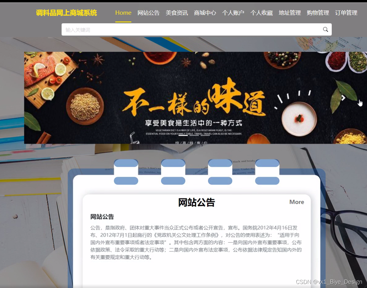 调料品网上商城系统采用Java编程语言,结合前段界面和MVC技术,在Myeclipse编辑器和Mysql数据库上设计并实现的。目的在于呈现一个完整的交易系统,供各种用户使用,系统着重实现了商品发布、出售、交易的功能。
