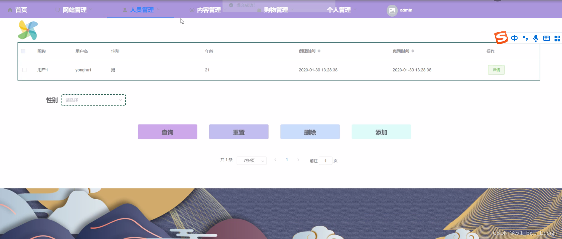 用户信息管理类界面如下图所示。