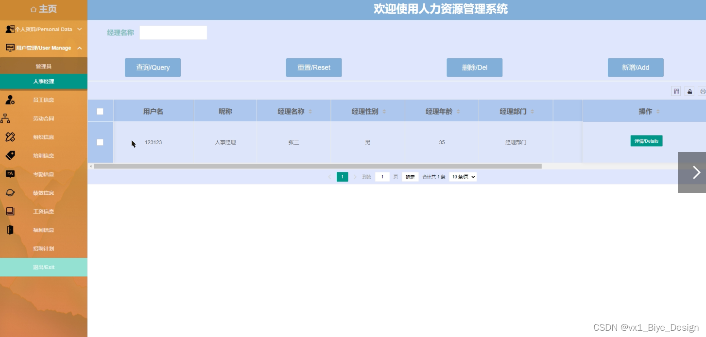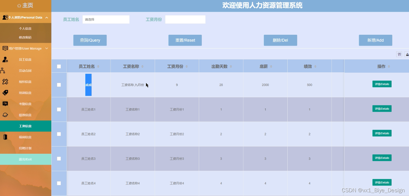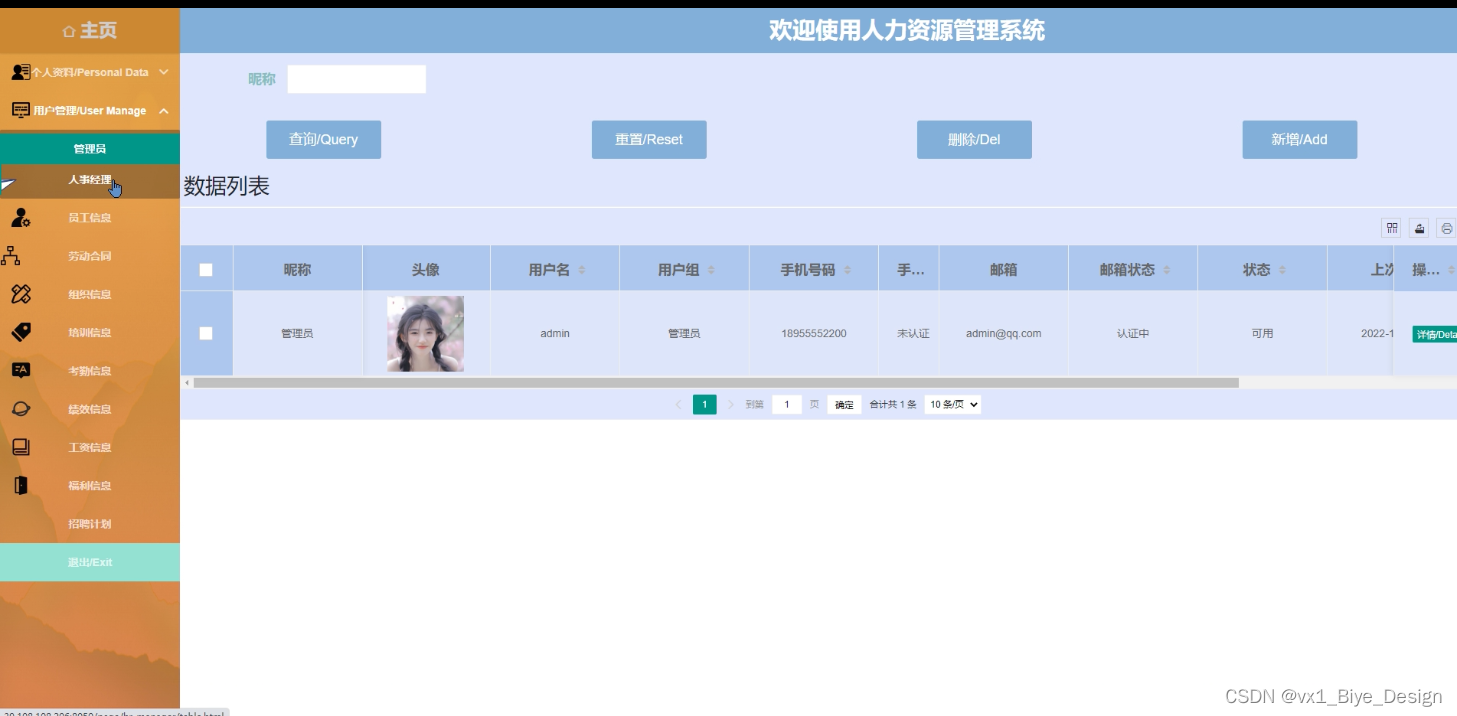 This design mainly realizes the human resource management system security scheme integrating the advantages of humanization, efficiency and convenience, and completes the functional modules such as home page, personal data, user management (administrator, personnel manager) employee information, labor contract, organization information, training information, attendance information, performance information, salary information, welfare information, recruitment plan, etc. The system communicates with the server through the browser to realize data interaction and change. The system improves work efficiency and reduces errors and omissions in data storage through scientific management and convenient services. The human resource management system security program uses Java language, uses Java technology based on MVVM mode for development, uses MyEclipse 2017 CI 10 compiler to write, and uses Microsoft's MySQL relational database as the data storage medium for data, and cooperates with the foreground HTML+CSS technology to complete the system development.
