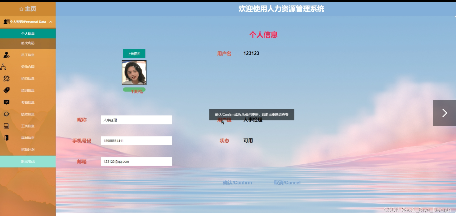 管理个人资料信息,修改可修改的信息项。