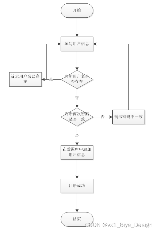 | 两次密码输入不一致 | 系统显示出提示信息,要求重新填写 | 一致 | |