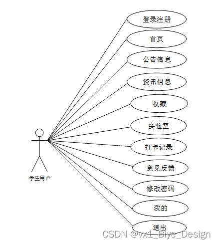 通过2.3功能的分析,得出了本实验室打卡系统小程序的用例图: