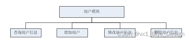 后台管理者能够实现对前台注册的用户增删改查操作,用户模块结构图如下图: