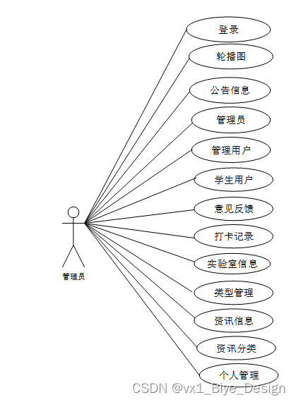 web后台管理上的管理员是维护整个实验室打卡系统小程序中所有数据信息的。管理员角色用例如图2-4所示。