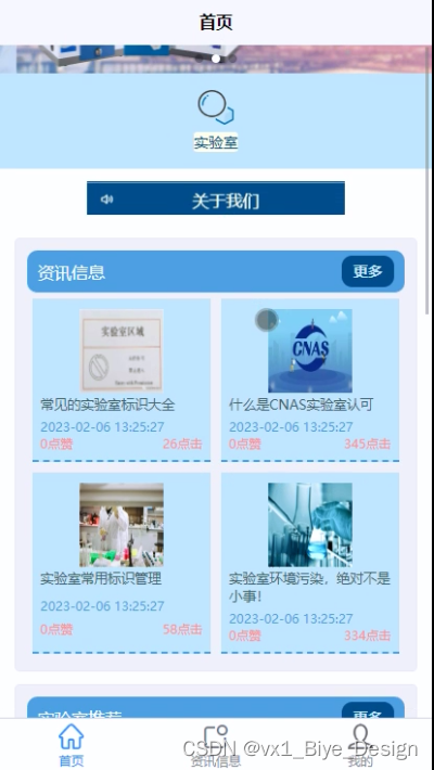 (5)资讯信息:在首页我们会看到“资讯信息”这一菜单,我们点击进入进去以后,会看到所有资讯列表,在这个界面,我们可以点击进入进行查看、评论、点赞等;