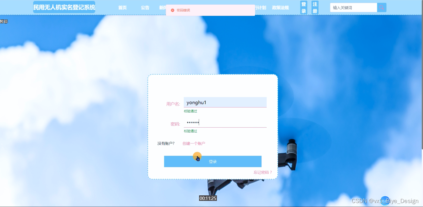 | 预期结果 | 提交以后,页面首页会显示新的无人机登记 |