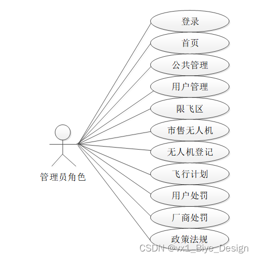 民用无人机实名登记系统中管理员角色用例图如图2.2所示: