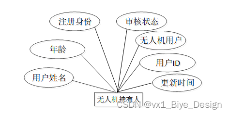 下面根据民用无人机实名登记系统的数据库总E-R关系图可以得出民用无人机实名登记系统需要很多E-R图,在此罗列出来一些主要的数据库E-R模型图。