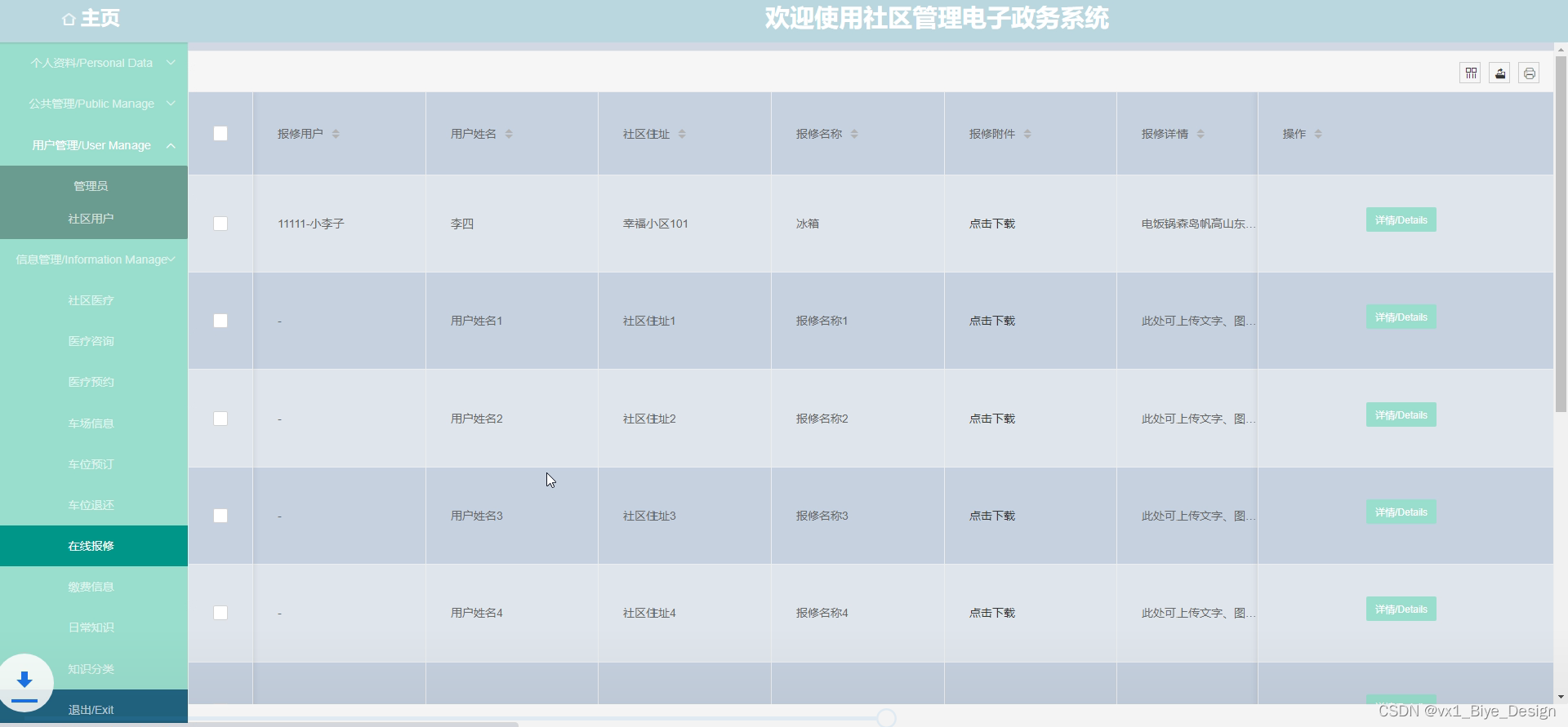 社区管理电子政务系统的系统项目的概述设计分析,主要是进行社区管理信息化的具体分析,进行数据库的是设计,数据采用mysql数据库,并且对于系统的设计采用比较人性化的操作设计,对于系统出现的错误信息可以及时做出处理及反馈。