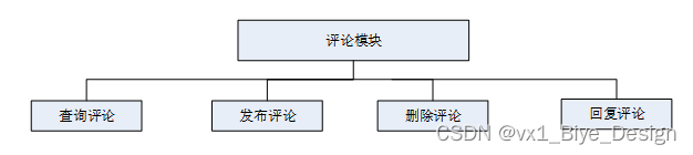 二手商城是一个交流性质的公开平台,会员用户可以在平台上交流,增加用户之间的互动性。但是同时也为了更好的规范评论的内容,给予管理员删除不合适的言论的功能,所以需要专门设计一个评论模块,具体的结构图如下:
