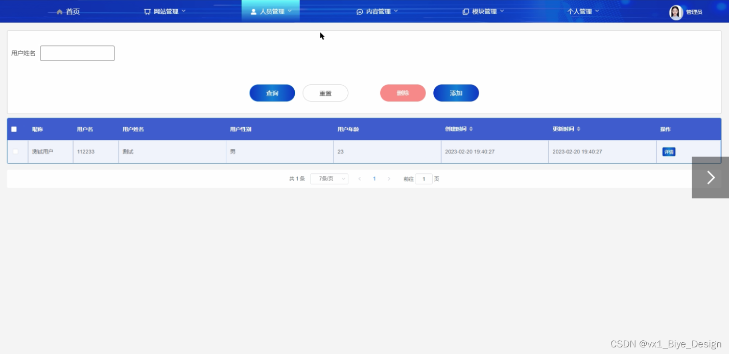 (4)用户管理:管理员可以对前台上注册过的用户信息进行管控,也可以对管理员信息进行管控。