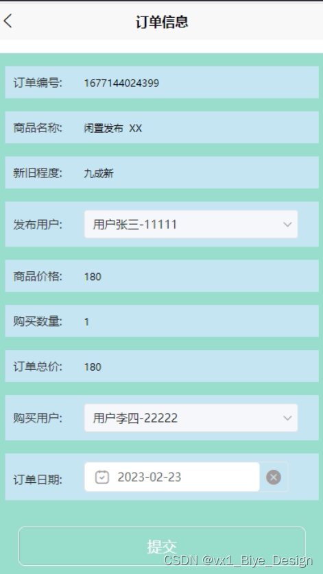 (6)我的订单:用户在提交订单后,可以对提交的订单进行管理。