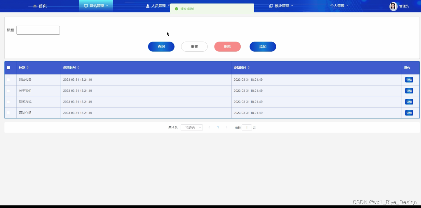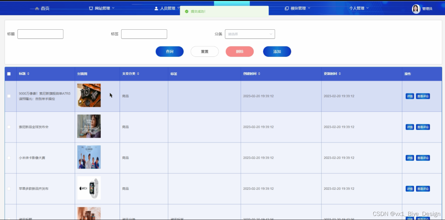二手商城中的管理人员是可以对二手商城内发布的物品进行添加、维护和管理的,支持增删改查操作。界面如下图4-10所示。