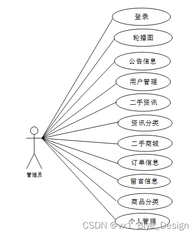 web后台管理上的管理员是维护整个二手商城中所有数据信息的。管理员角色用例如图2-5所示。