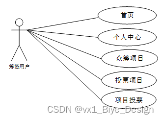 筹资用户:首页、个人资料(个人信息、修改密码)、众筹项目、项目投票、投资项目等;