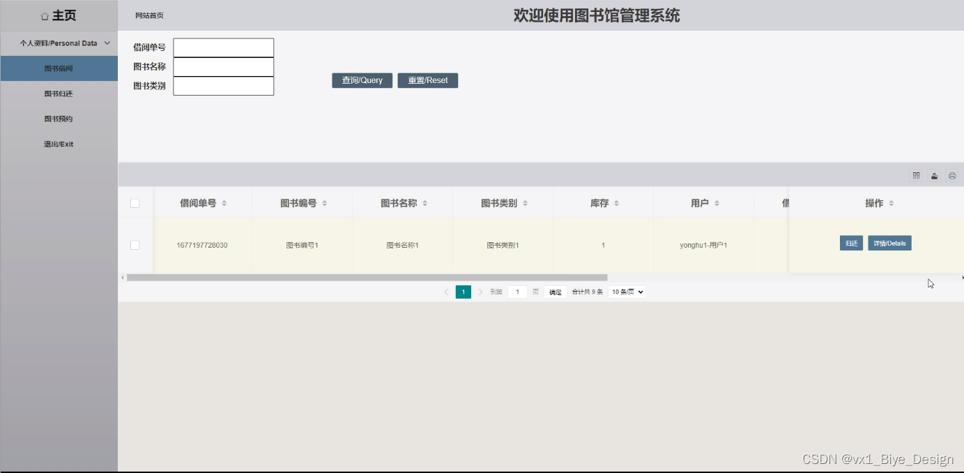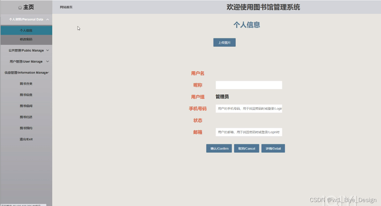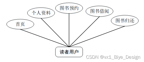 读者用户实现功能包括个人资料(个人信息、修改密码)、图书借阅、图书归还、图书预约等功能。读者用户例如图3-8所示。